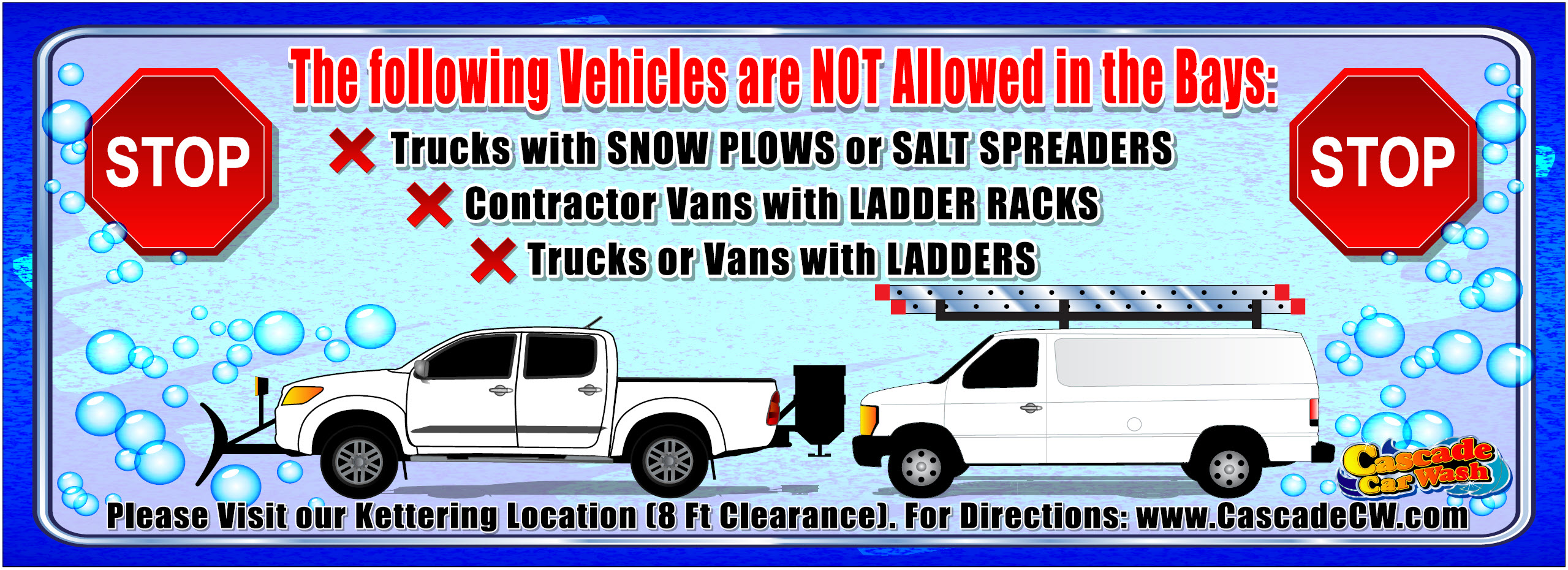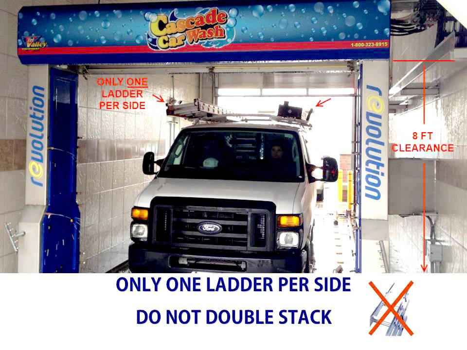 - Service Vans with a total height exceeding 96” including ladders (Warning: Do NOT Double stack ladders)
