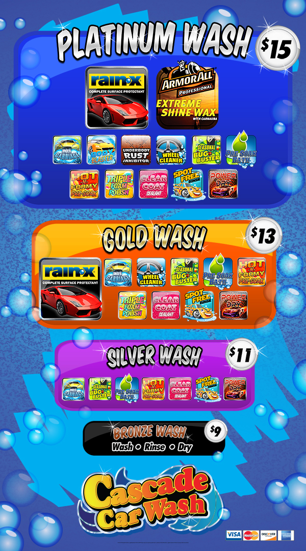 Come experience THE BEST TOUCHLESS CAR WASH SYSTEM at one of five convenient locations where nothing but cleaning agents and high-pressure water touch your vehicle. This is why Cascade Car Wash is recommended by LUXURY Car Manufacturers. (See Photos)
